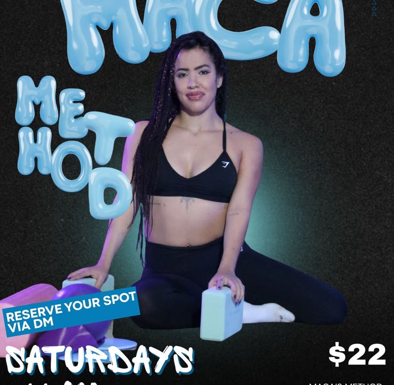 Maca's Method is a unique movement practice in Orlando that blends principles of Pilates and Yoga, designed specifically to help dancers improve strength, mobility, balance, and body awareness. This training supports dancers of all levels by enhancing control, flexibility, and injury prevention while elevating overall performance. Classes take place every Saturday in Orlando and are limited to only 12 spots, ensuring personalized attention and focused growth for each dancer.